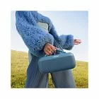 Колонка SoundLink Max шириной 26,47 см, высотой 12,01 см, глубиной 10,49 и весом чуть менее 2,27 кг имеет съемную веревочную ручку, поэтому колонку удобно переносить и брать с собой. Дополнительно доступен веревочный плечевой ремень, а также сменные ручки с яркими цветовыми комбинациями.