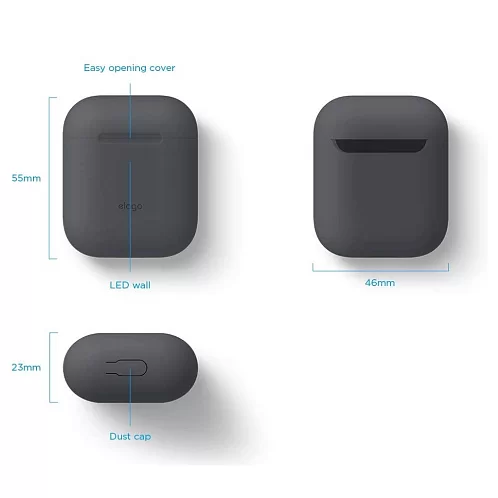 Чехол Elago Slim case для AirPods Gen 1 & 2, силикон, темно-серый