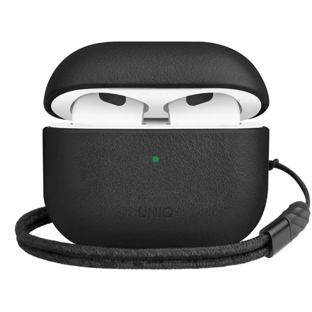 Чехол Uniq Terra Genuine Leather с ремешком для Airpods 3, черный