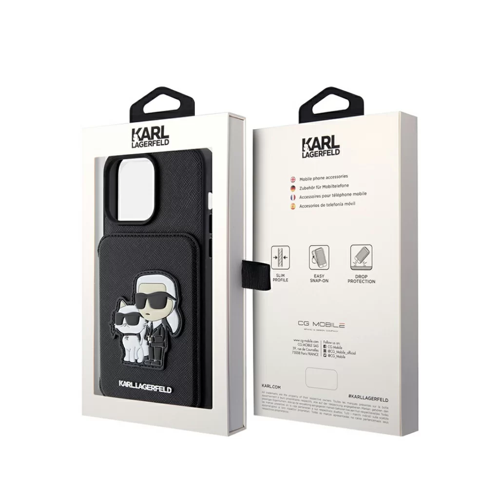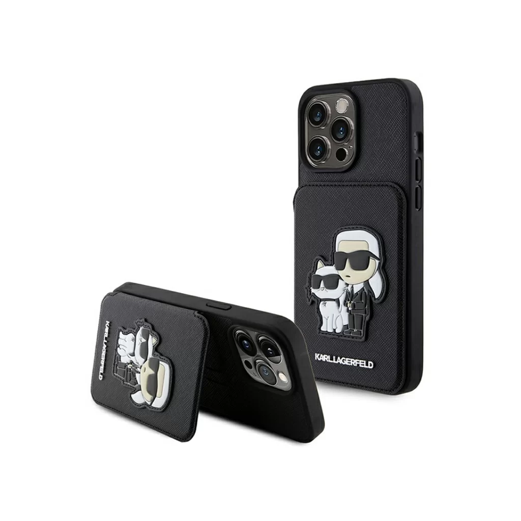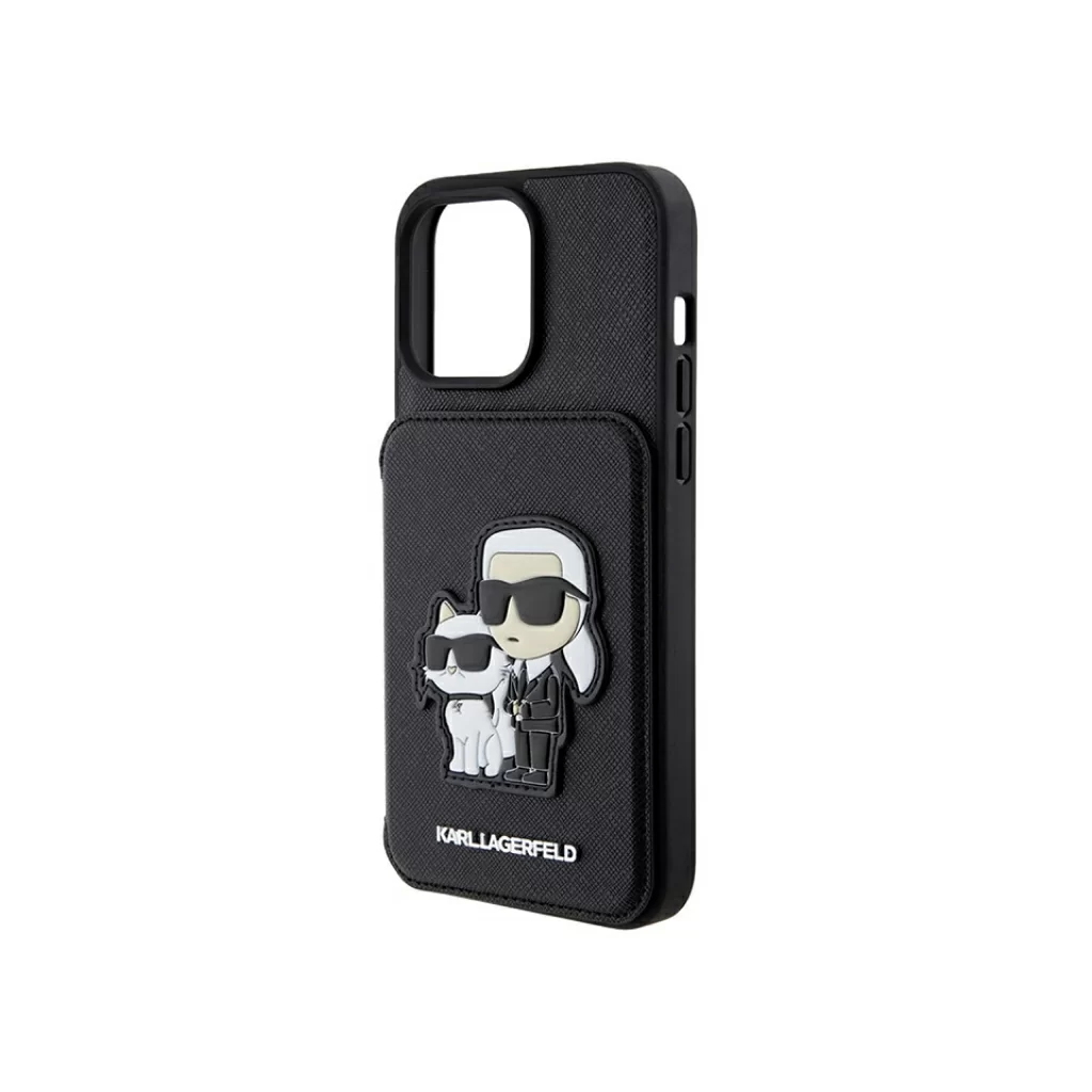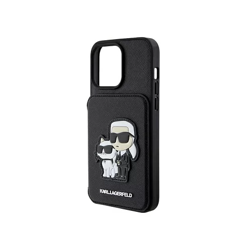 Чехол Lagerfeld для iPhone 15 Pro Cardslot Stand PU Saffiano NFT Karl & Choupette Hard Black
