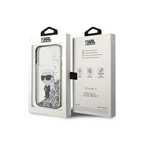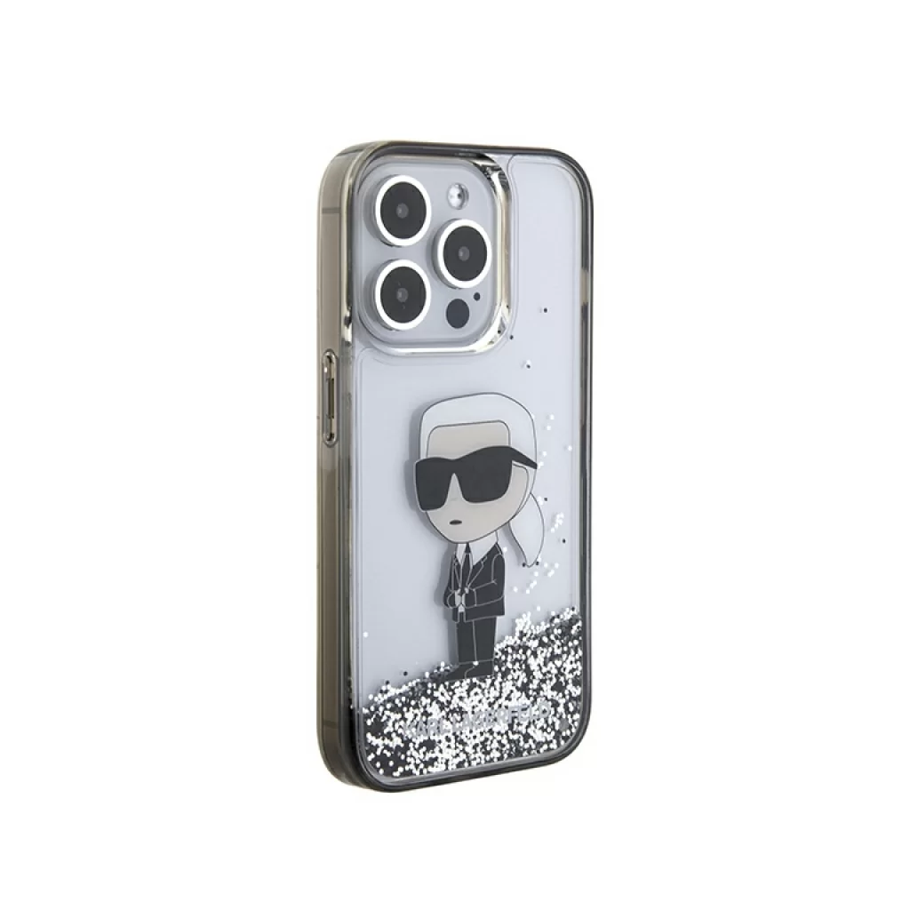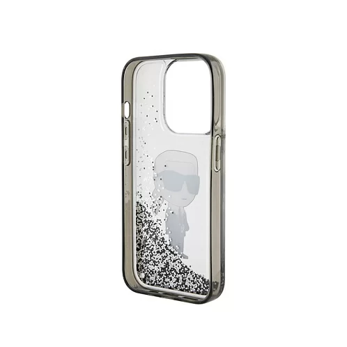 Чехол Lagerfeld для iPhone 15 Pro Liquid Glitter NFT Karl Ikonik Hard Transparent/Black