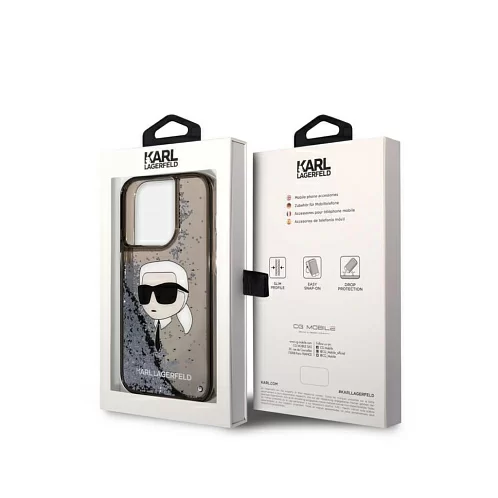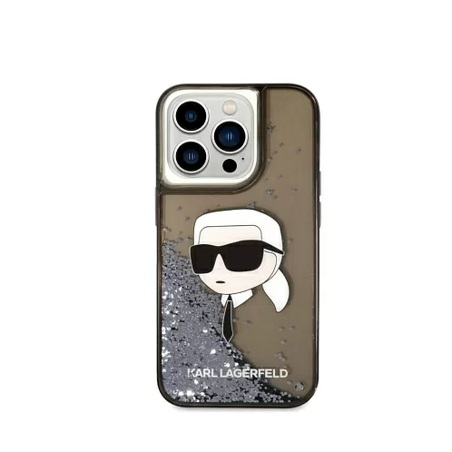 Чехол Lagerfeld для iPhone 15 Pro Liquid Glitter NFT Karl's Head Hard Black