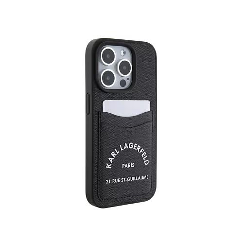 Чехол Lagerfeld для iPhone 15 Pro Max Cardslot PU Saffiano RSG 3D rubber logo Hard Black