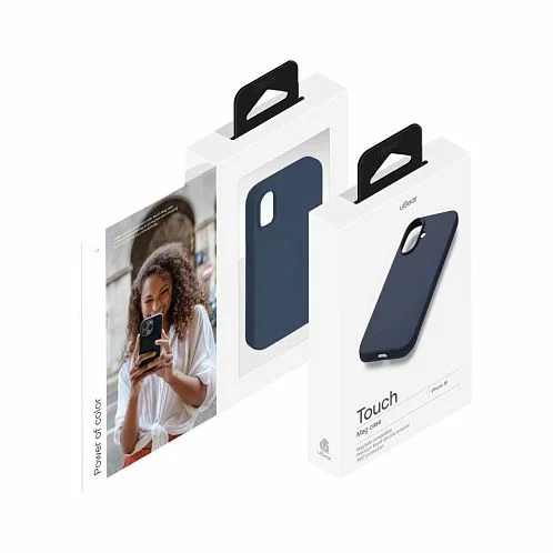 Чехол uBear Touch Mag Case для iPhone 16, силикон, софт-тач, темно-синий