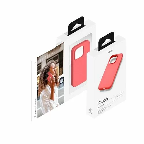 Чехол uBear Touch Mag Case для iPhone 16 Pro, силикон, софт-тач, коралловый