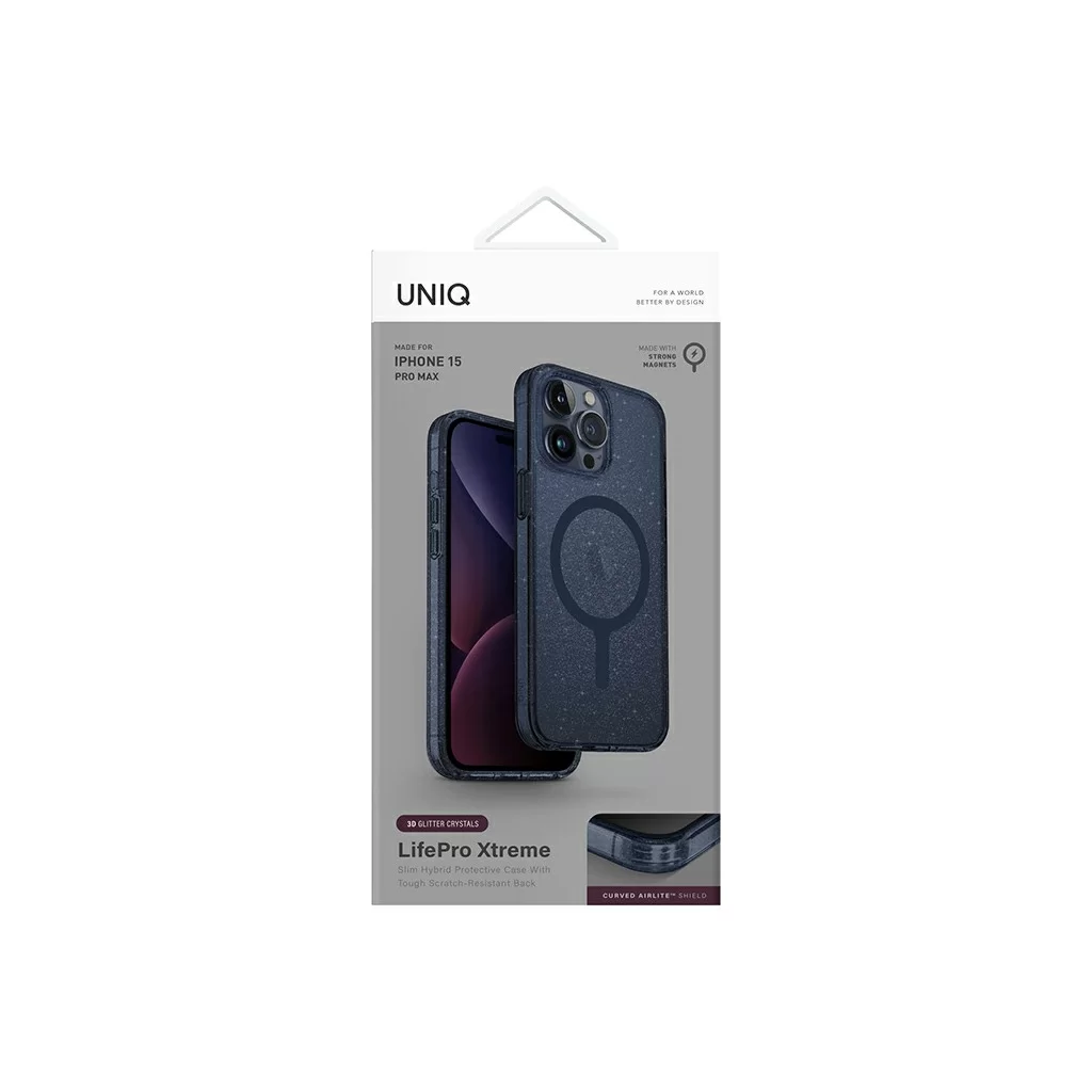 Чехол Uniq для iPhone 15 Pro Max Lifepro Xtreme, MagSafe, синяя мишура