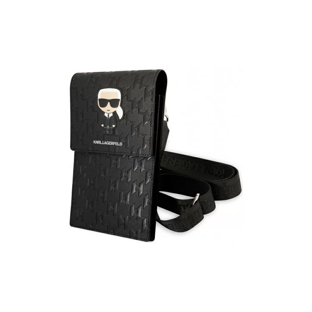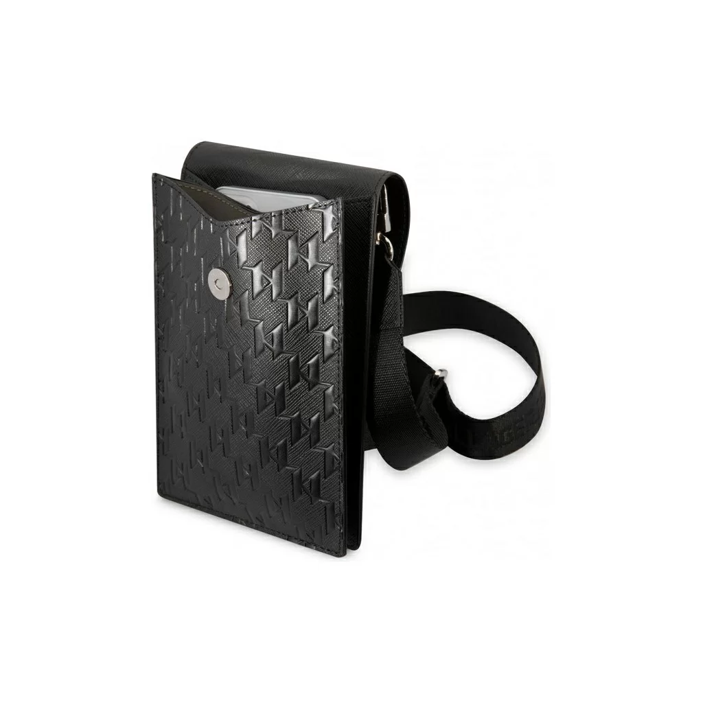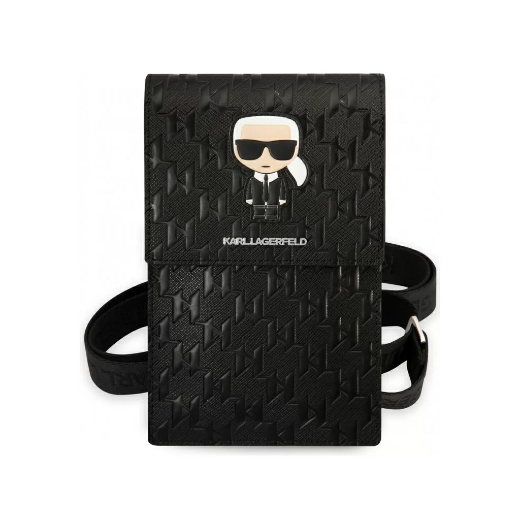 Сумка Lagerfeld Wallet Phone Pouch Saffiano Monogram Ikonik patch для смартфонов, серебро / черный