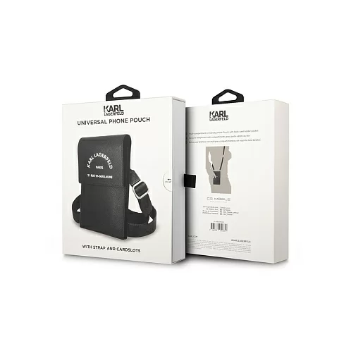 Удобная и эффектная сумка-чехол для мобильного телефона, выполненная из прочной искусственной кожи с символикой дома моды Karl Lagerfeld. На откидной крышке сумки размещено фирменное изображение дизайнера или логотипа (в зависимости от модели). Закрывается крышка при помощи магнитной застежки.