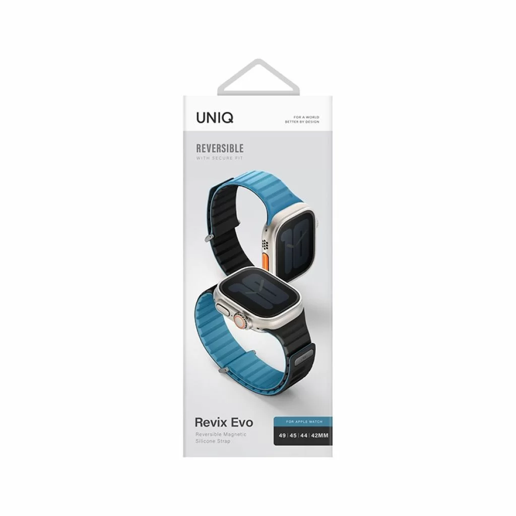 Ремешок Uniq Revix EVO Premium для Apple Watch, 49/45/44/42 мм, двухсторонний, голубой/черный