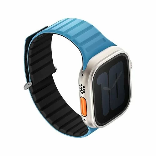 Двусторонний ремешок из мягкого силикона Uniq REVIX EVO для Apple Watch с размером корпуса 49-46-45-44. Вы можете легко поменять внешние стороны ремешка в зависимости от своего стиля и предпочтений. Фиксируется на руке с помощью удобной магнитной застежки, выдерживает нагрузку до 1.2 кг. Возможность регулировки длины за счет встроенных магнитов обеспечивает точное соответствие размерам руки. Металлическая стальная застежка дополнительно фиксирует устройство на запястье, позволяя не беспокоиться об утере даже при занятиях спортом.