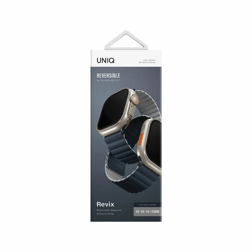 Ремешок Uniq Revix для Apple Watch 49/45/44/42 mm, двухсторонний, синий/серый