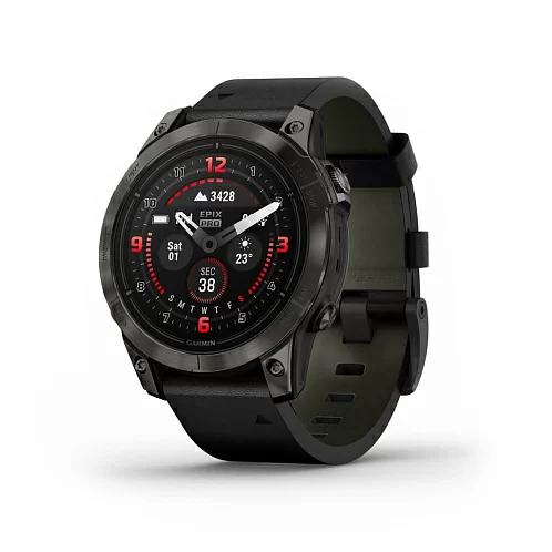 Умные часы Garmin Epix Pro (Gen 2) Sapphire Edition 47 мм, титан/серый/DLC, ремешок - кожа, черный