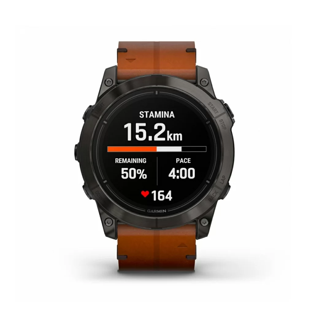 Надежная конструкция спортивных часов включает яркий AMOLED-дисплей 1,4” с защитой от появления царапин, чувствительный сенсорный экран, традиционные кнопки и корпус 51 мм из усиленного волокнами полимера. Кольцо вокруг дисплея и задняя крышка выполнены из титана. Часы тестируются на соответствие военным стандартам США по температурному и ударному воздействию, а также по водоустойчивости.