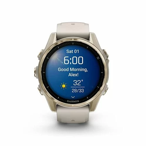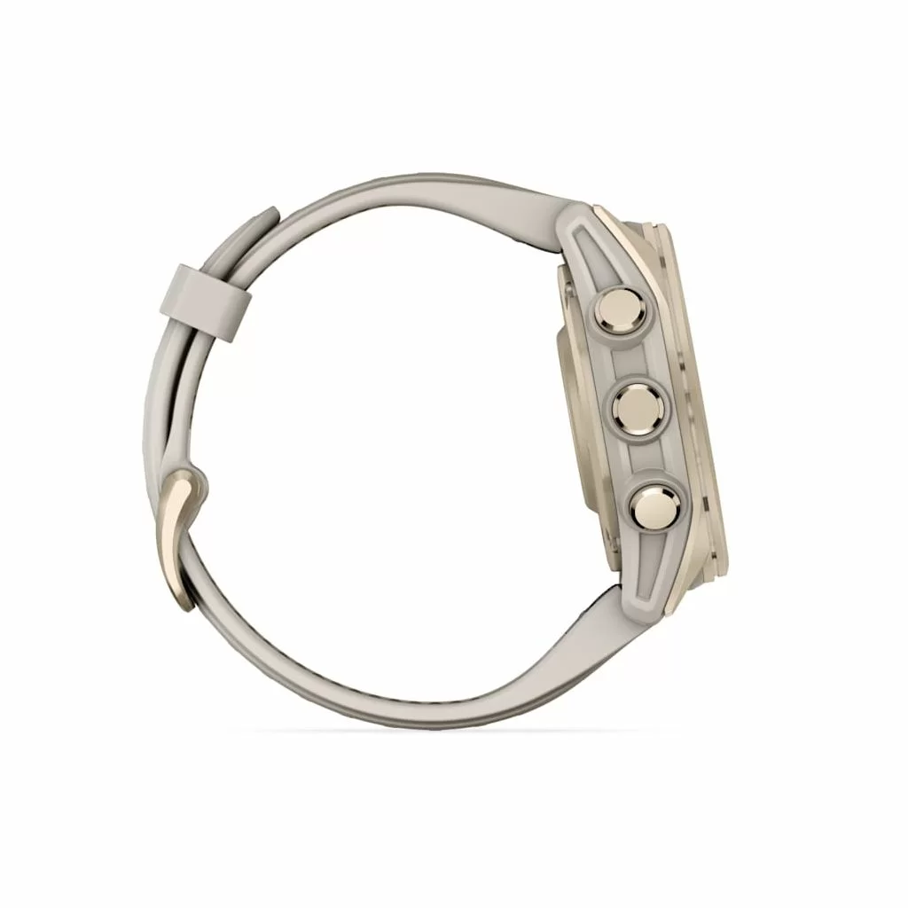 Умные часы Garmin Fenix 8 Sapphire AMOLED 43 мм, золотистый корпус, дымчато-серый ремешок