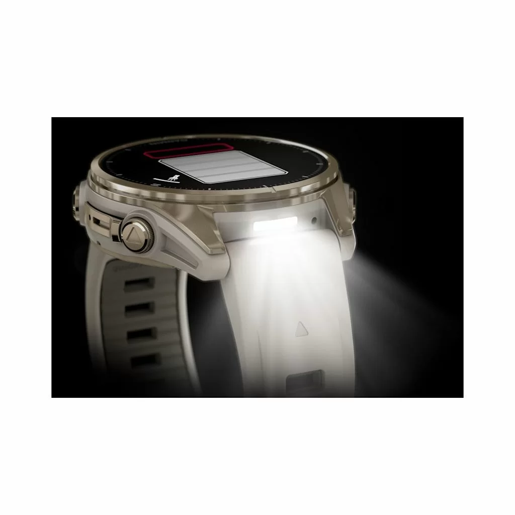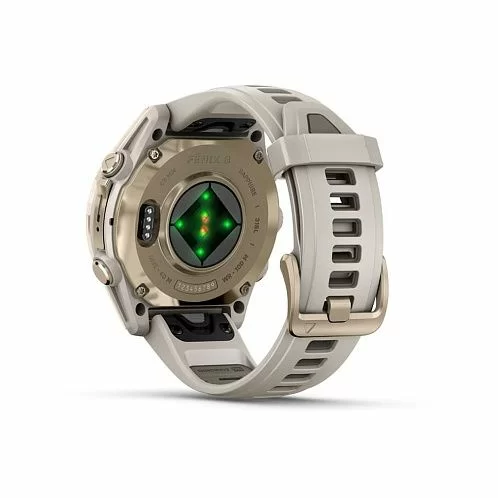 Garmin Fenix 8 получили сенсорный экран и диагональю 1,3 дюйма с разрешением 416х416 точек. AMOLED матрица передает картинку в высокой яркости и контрастности, изображение хорошо видно даже под углом. Экран защищен стеклом Power Sapphire, устойчивым к царапинам. Дисплей может отображать время в аналоговом и цифровом формате.