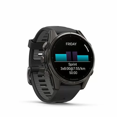 Умные часы Garmin Fenix 8 Sapphire AMOLED 43 мм,Carbon Gray DLC Titanium, Black/Pebble Gray Silicone