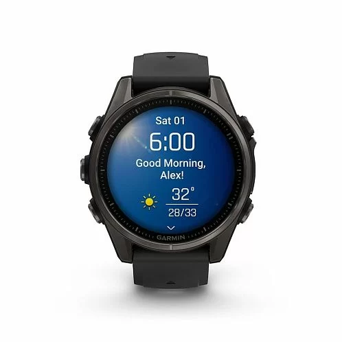 Garmin Fenix 8 получили сенсорный экран и диагональю 1,3 дюйма с разрешением 416х416 точек. AMOLED матрица передает картинку в высокой яркости и контрастности, изображение хорошо видно даже под углом. Экран защищен стеклом Power Sapphire, устойчивым к царапинам. Дисплей может отображать время в аналоговом и цифровом формате.