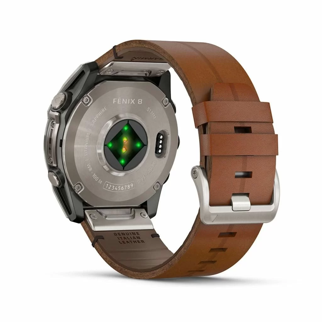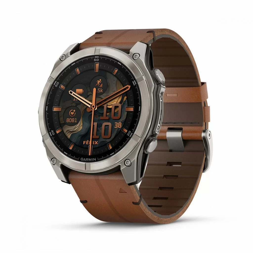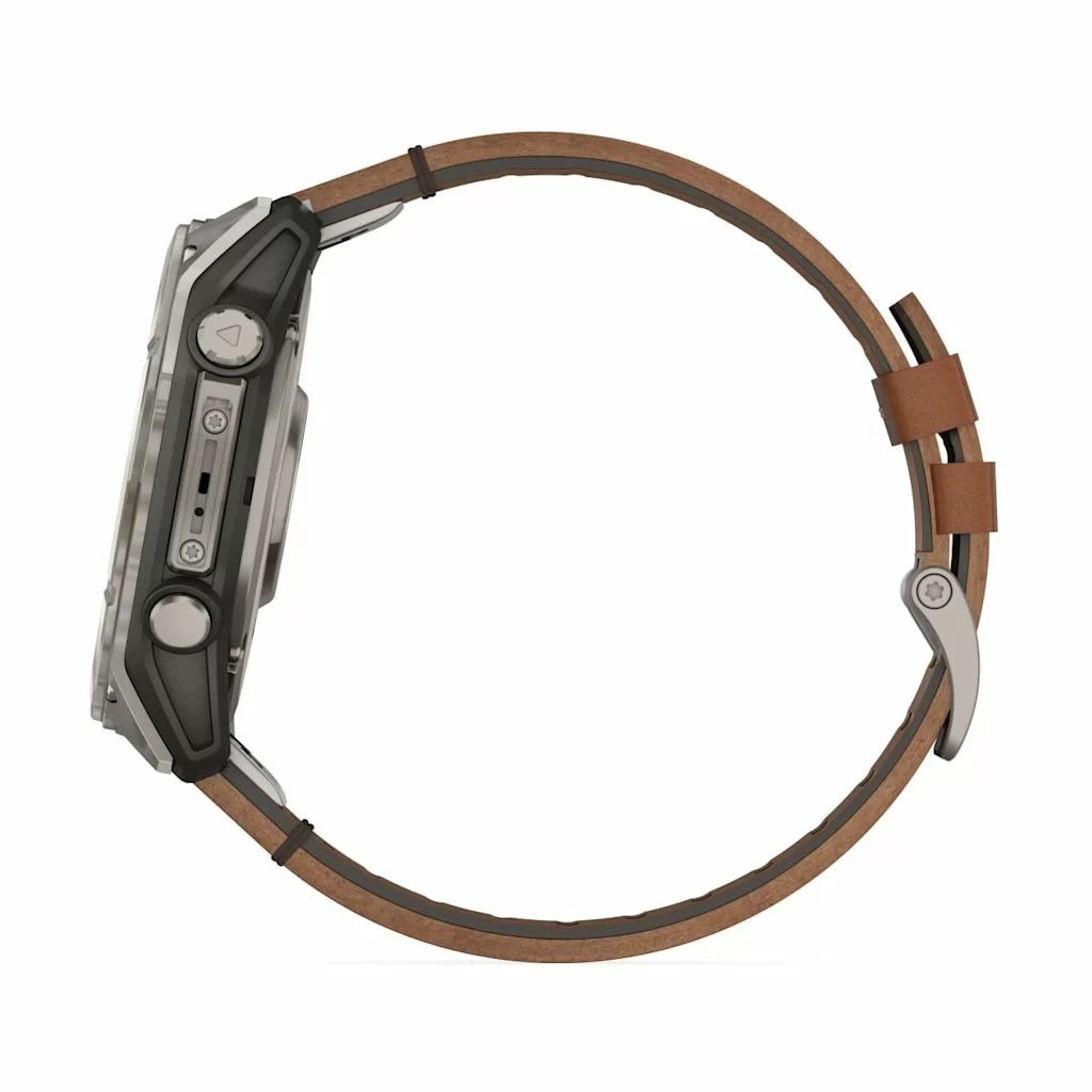 Умные часы Garmin Fenix 8 Sapphire AMOLED 51 мм, титан, ремешок - кожа/коричневый + силикон/графит