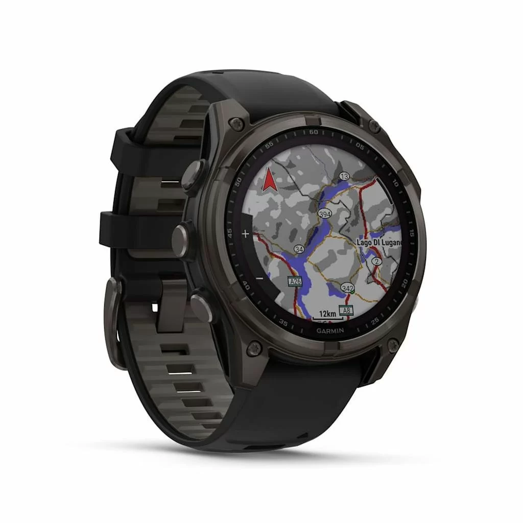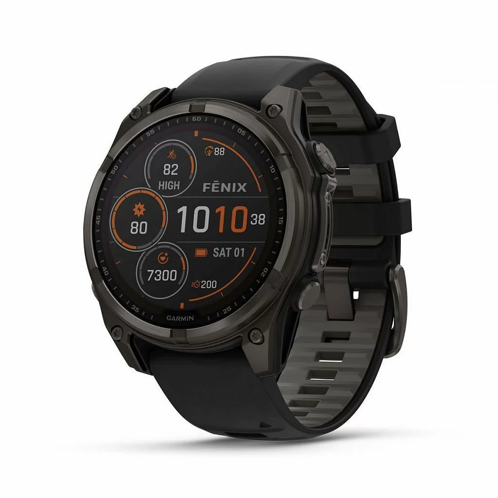 Умные часы Garmin Fenix 8 Sapphire Solar 47 мм, титан с DLC, ремешок - силикон, чёрный/серый