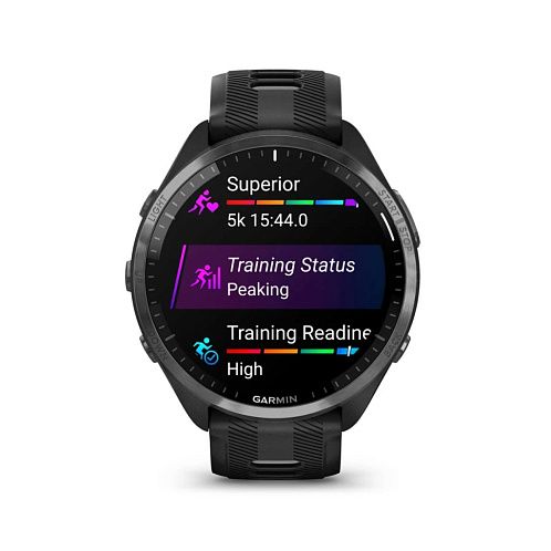 Умные часы Garmin Forerunner 965 черные, темно-серый DLC/титановый безель, ремешок - черный