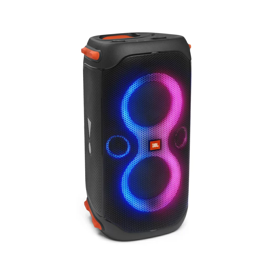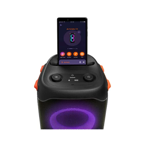JBL PartyBox 110 обеспечивает превосходное звучание музыки в помещении и на открытом воздухе благодаря двум уровням глубоких регулируемых басов и мощному звуку JBL Original Pro.