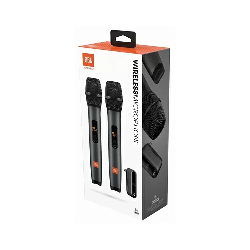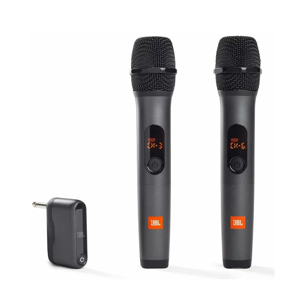 Используйте беспроводные микрофоны JBL с колонкой с входом для микрофона. Но для оптимальной работы добавьте любую колонку JBL PartyBox.