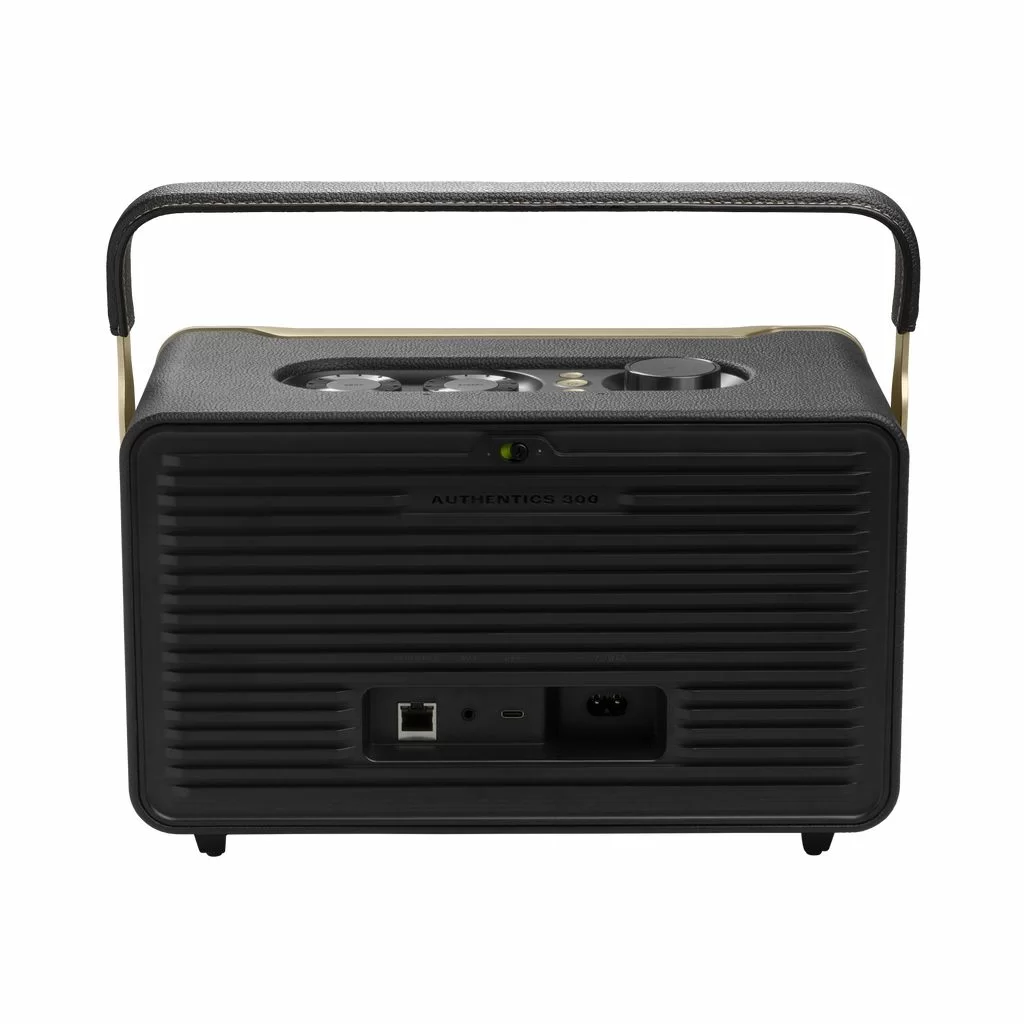 Акустическая система Authentics 300 изготовлена из 100% переработанной ткани, 85% переработанного пластика и 50% алюминия и поставляется в картонной коробке, сертифицированной FSC, с печатью соевыми чернилами.