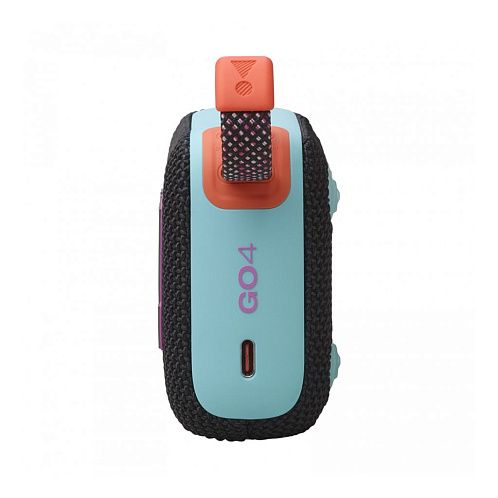 JBL GO 4 выполнена в ярких и стильных цветах, вдохновлённых последними модными тенденциями. Корпус сочетает прочную ткань и прорезиненные элементы для дополнительной защиты. Благодаря эргономичной форме и удобной петле, её можно закрепить на рюкзаке, велосипеде или просто носить в руке.