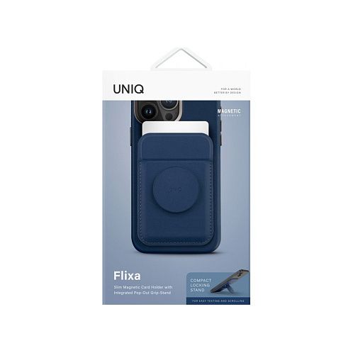 Чехол-бумажник Uniq FLIXA Magnetic card holder, с функцией стенда, синий