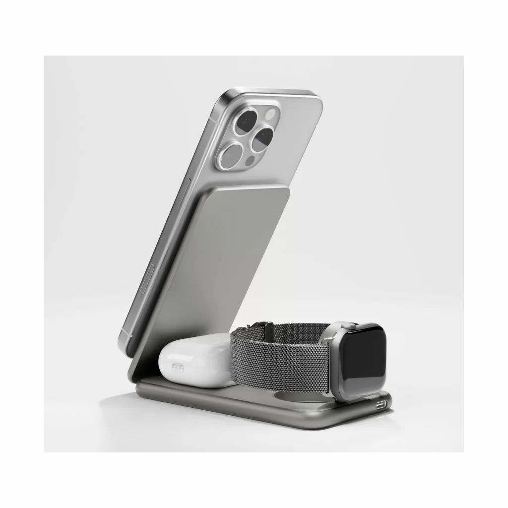 VLP Alum Power Pro — это компактная складная станция "3 в 1", предназначенная для одновременной зарядки iPhone, Apple Watch и AirPods.