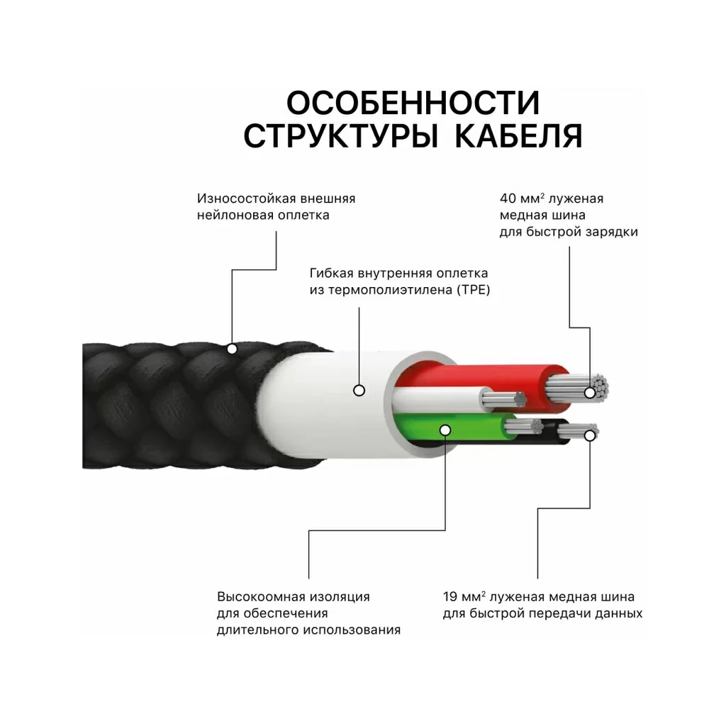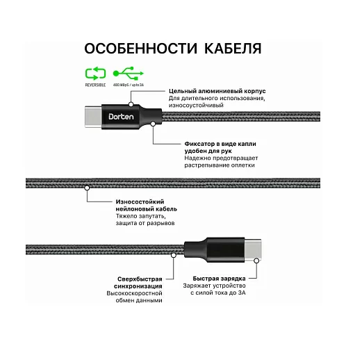 Кабель Dorten USB-C / USB-C PD, 60W, 1.2м, черный