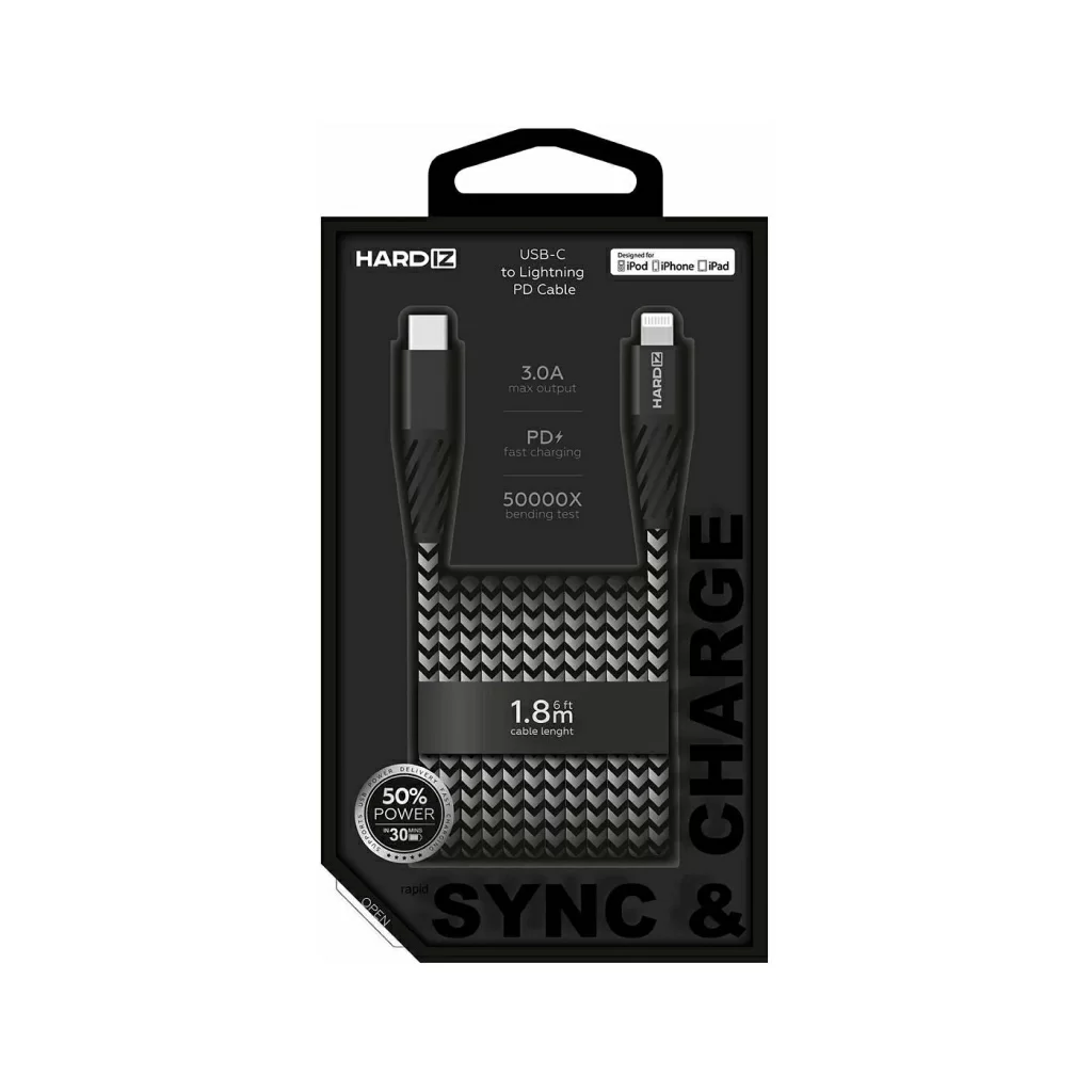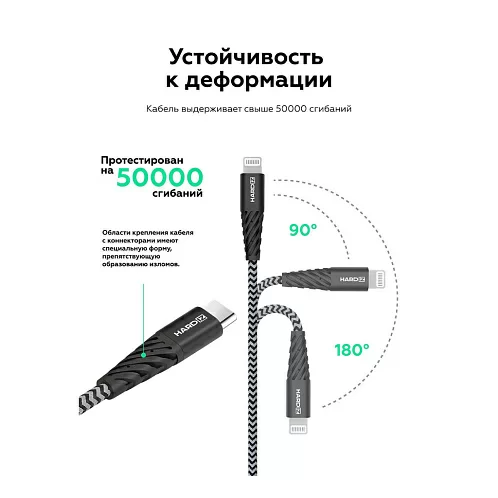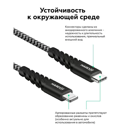 Кабель HARDIZ MFI USB-C / Lightning (C94) PD, 1.8м, черный
