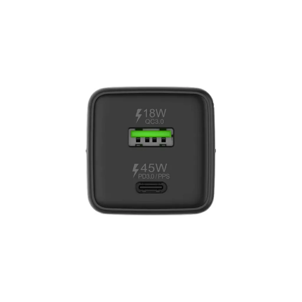 Универсальное зарядное устройство с возможностью подключения до 2-х устройств. С помощью передовой технологии GaN зарядное устройство поддерживает выходную мощность до 45 Вт и при этом имеет компактные размеры. Чипсет Smart ID обеспечивает эффективную зарядку одного требовательного устройства или любых двух устройств определяя использование каждого порта и соответствующим образом направляя оптимальную мощность. Безопасность адаптера питания и подключенных устройств обеспечивается встроенной защитой от перегрузки по току и напряжению.