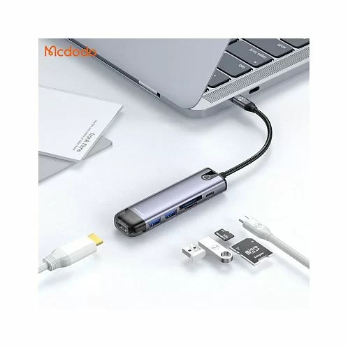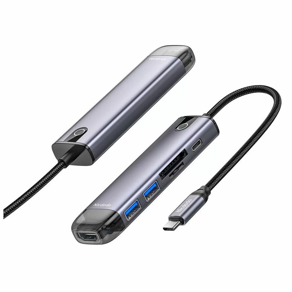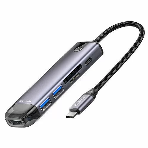 USB-хаб McDodo 6 в 1 HU-774, 100 Вт USB-C, серый