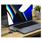 Компактный алюминиевый корпус Satechi Pro Hub Mini отлично сочетается c дизайном ноутбуков, поскольку аксессуар специально разработан для данных моделей. Для подключения используются два USB-C, а сам хаб не закрывает MagSafe. Кроме того, подключать зарядное устройство с разъёмом Type-C можно прямо через Pro Hub Mini. Поддерживаются адаптеры мощностью до 96 Вт.