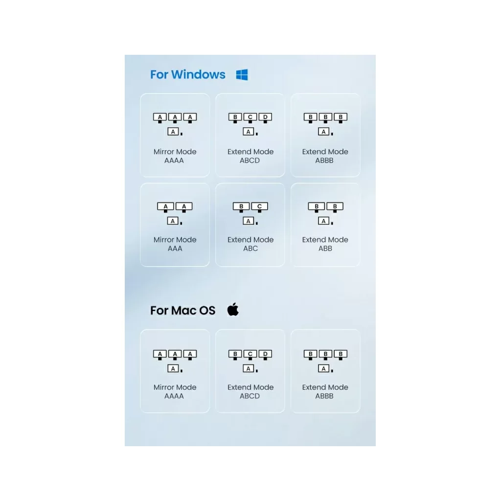 Док-станция UGREEN для MacBook совместима с системами ОС Windows и macOS, включая Macbook M1 M2, и позволяет расширить экраны до трех разных дисплеев. Эта док-станция имеет самое высокое разрешение экрана на рынке.
