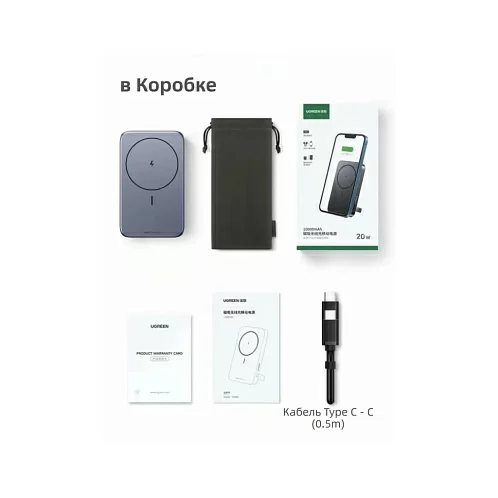 Внешний аккумулятор UGREEN Magnetic Wireless 20W, 10000mAh, "серый космос"