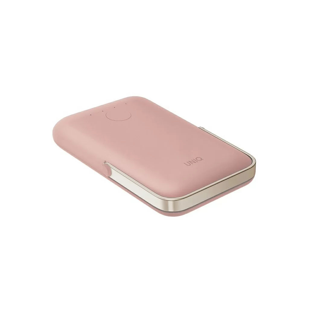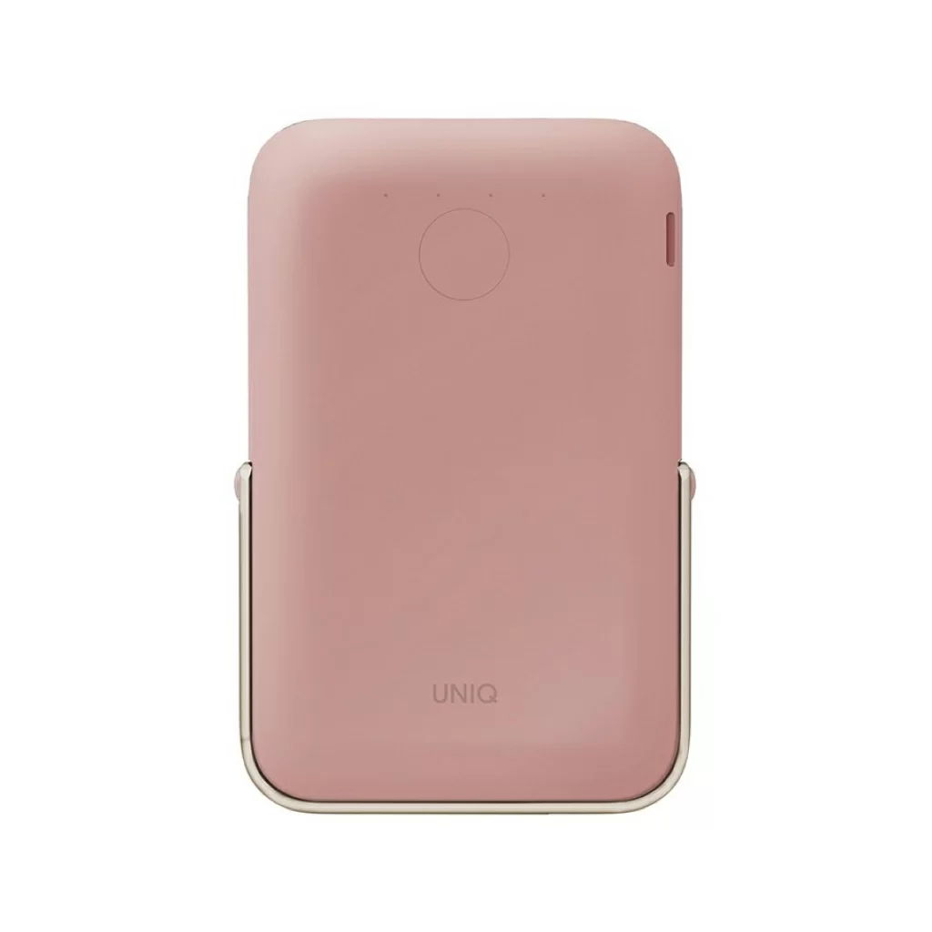 Внешний аккумулятор Uniq HOVEO 5000W, беспровод 15W, провод USB-C 20W, подставка, розовый