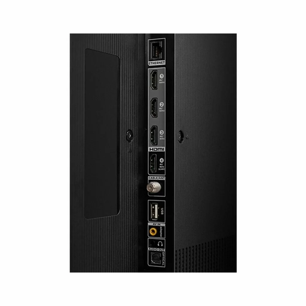 4 HDMI (1 с eARC), USB, Bluetooth 5.2, Wi-Fi 5, Ethernet и разъем для наушников. Совместимость с VESA 600x400 позволяет установить телевизор на стену.