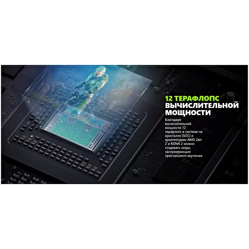 Благодаря вычислительной мощности 12 терафлопс в системе на кристалле (SOC) и архитектурам AMD Zen 2 и RDNA 2 можно создавать миры, заслуживающие пристального изучения.