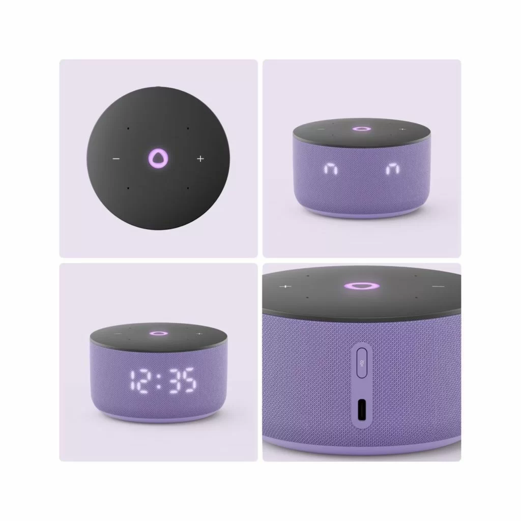 Благодаря более мягкой, цельной и гармоничной форме корпуса Станция Мини 3 отлично смотрится в любом современном интерьере. Цветовая палитра умной колонки тоже обновилась: можно выбрать классические чёрный и серый, а для ценителей акцентов подойдёт пастельный фиолетовый оттенок.